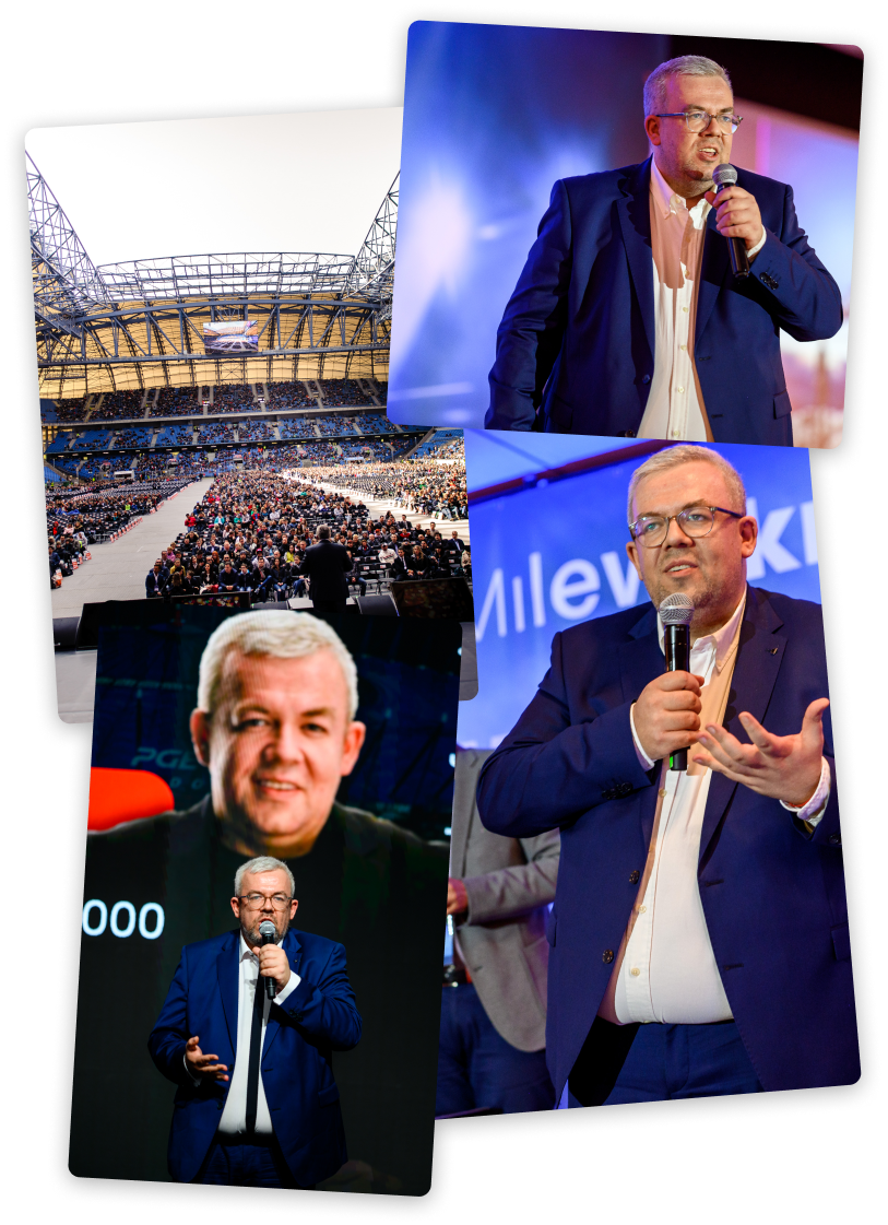 Razem z zespołem stworzył największe wydarzenia rozwojowe w Polsce, zapisując się w historii branży jako prawdziwy lider. Jednym z jego projektów była konferencja „Życie Bez Ograniczeń,” która zgromadziła 30 tysięcy uczestników – rekord Polski dla wydarzenia rozwojowego. To nie był koncert, lecz potężna dawka inspiracji, która zmieniła życie tysięcy ludzi.
